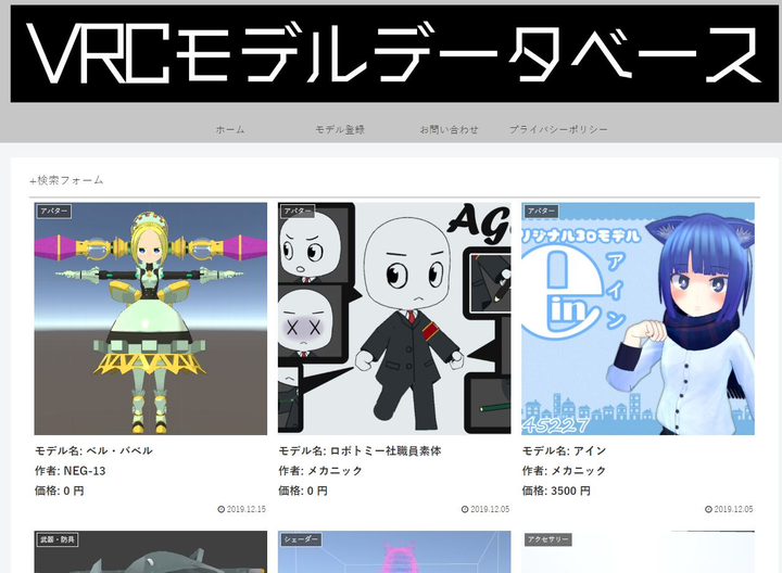 ・開発期間: 2019年5月~2019年6月 ・サービス終了: 2020年9月 ・概要 開発当時VRChat向けの3Dモデルの検索性が著しく悪いという課題があり、より検索性の高いユーザー登録型データベース、ある種Wiki的なものとして作成した ・アーキテクチャ - WordPress + Xserver ・苦労したこと・反省点 3Dモデルの増加ペースに作業が追い付かなくなったことがサービス終了の主要因。反省点は、ボランティアが3Dモデルを登録するモチベーションをキープするためのシステム的な設計が欠けていたこと