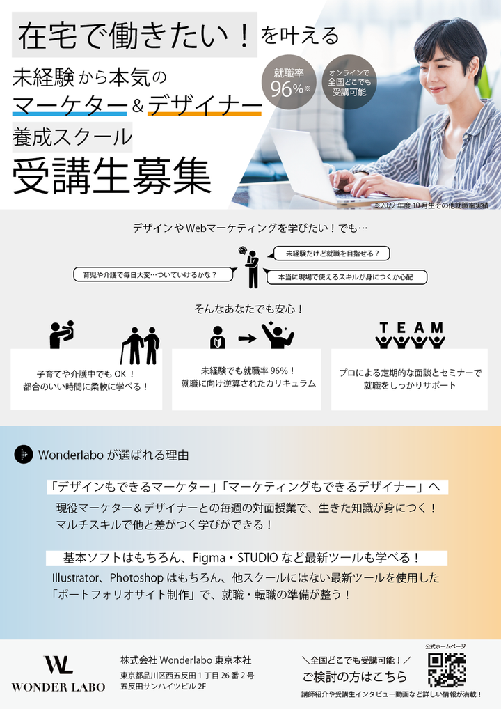職業訓練校 株式会社Wonderlabo / 基礎から学べるWEBデザイン/サイト制作科(eラーニング)