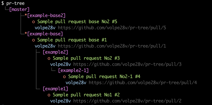 コマンドラインから Github のプルリクをツリーで可視化する。 PRの依存関係や担当者・レビューアがひと目でわかる!
