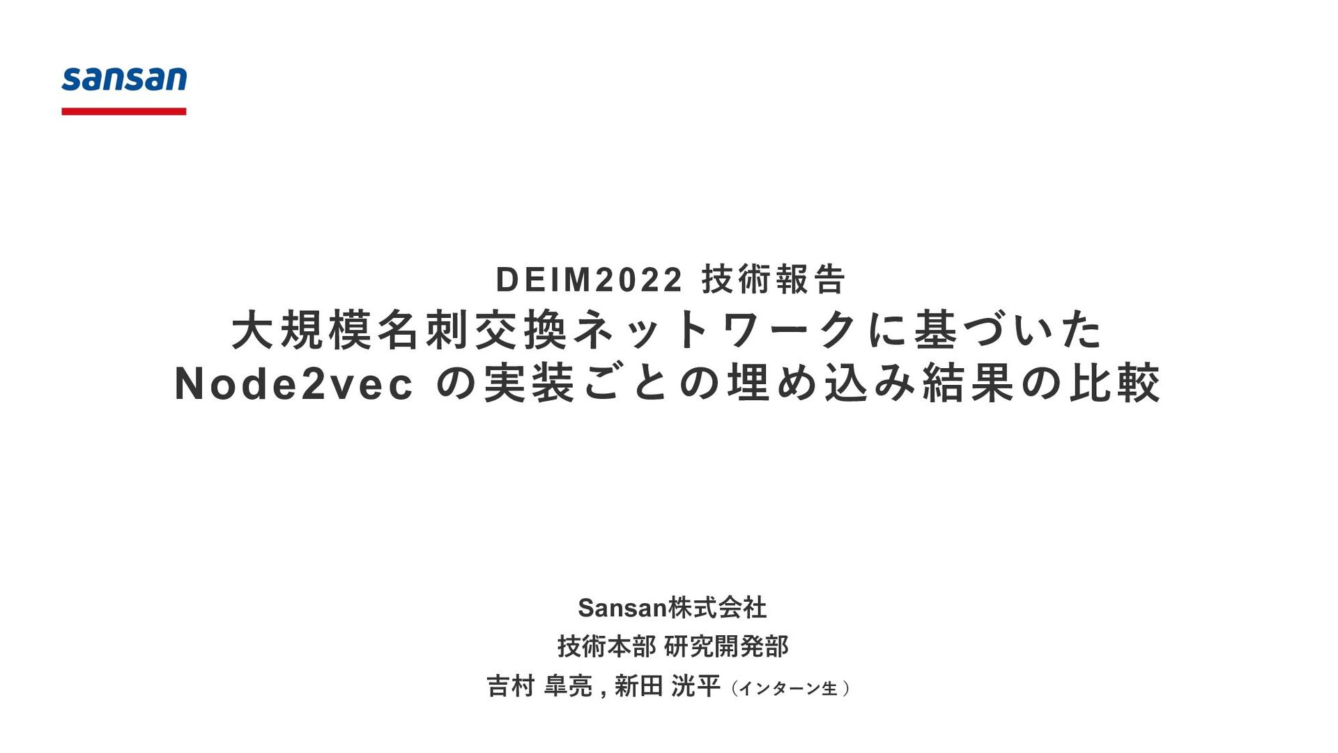 大規模名刺交換ネットワークに基づいた Node2vec の実装ごとの埋め込み結果の比較を行いました。