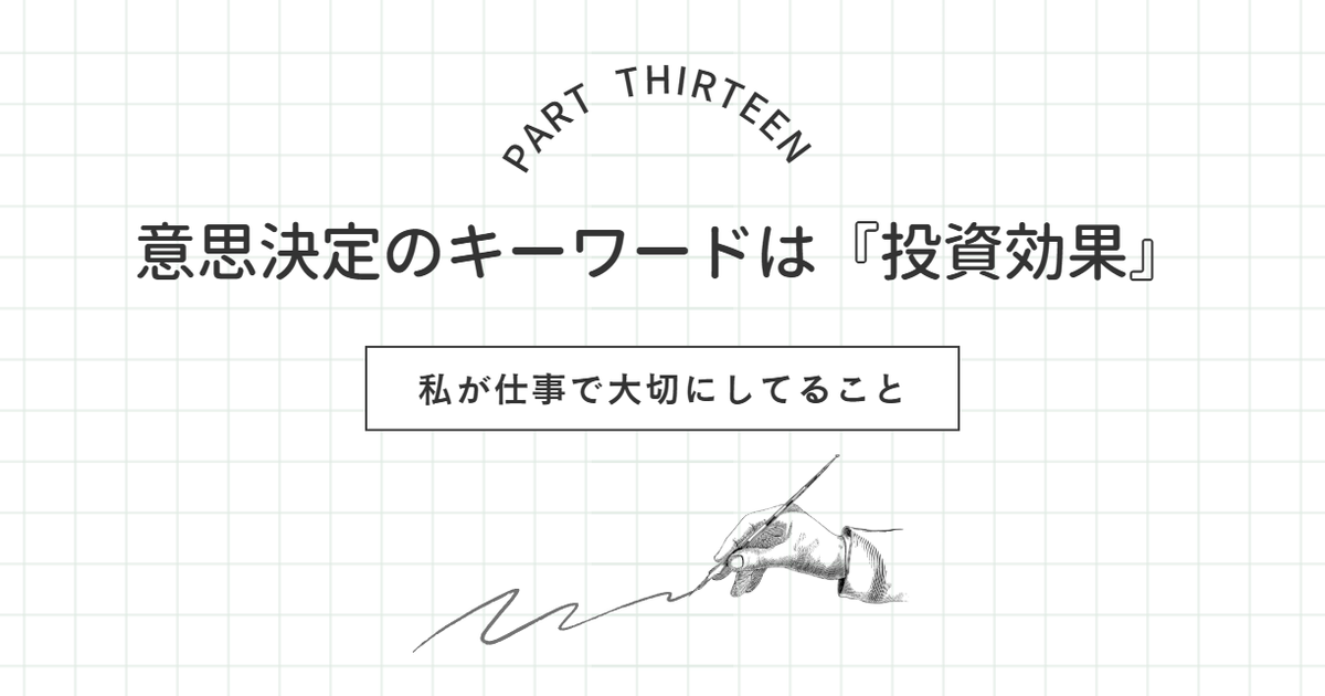 【私の仕事術⑬】意思決定のキーワードは『投資効果』