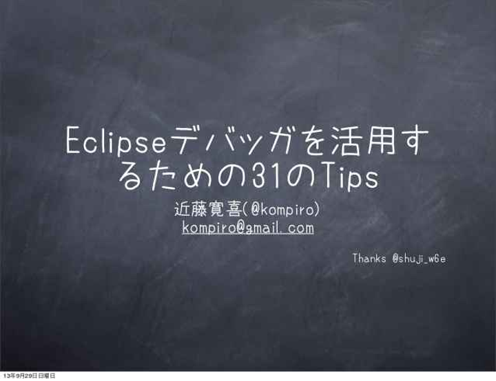 Eclipseデバッガの使い方の基本から応用までを網羅したスライド。