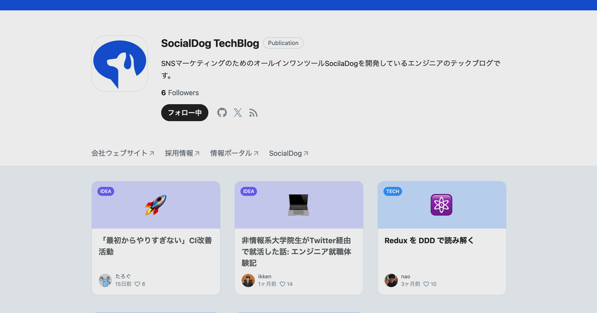 SNS管理ツール「SocialDog」の開発をするために創業。 イケてるSaaSを作るべく日々奮闘しています。