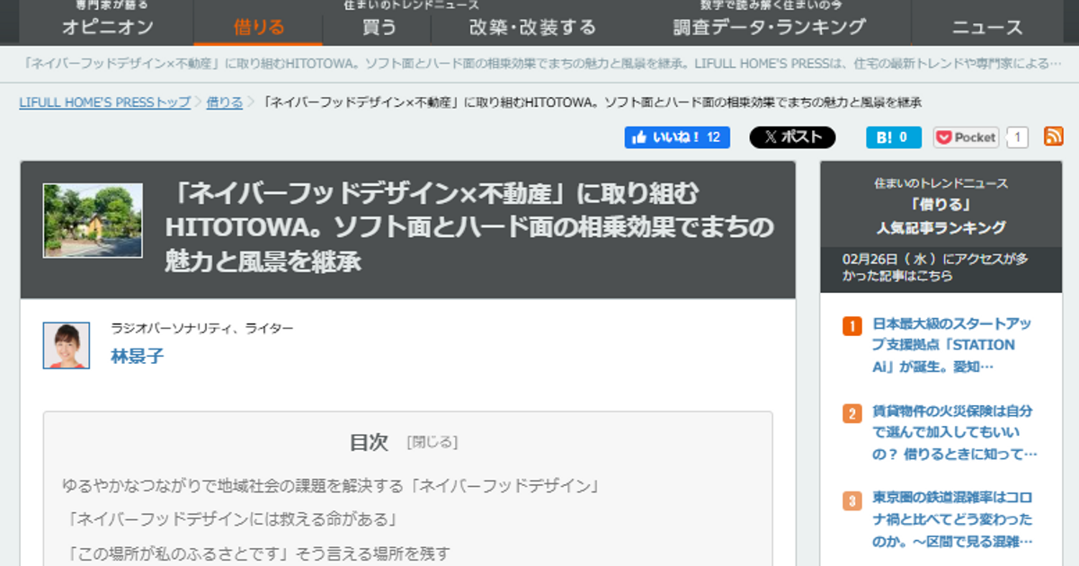 HITOTOWA INC. / シニアプランナー/ネイバーフッドデザイン事業