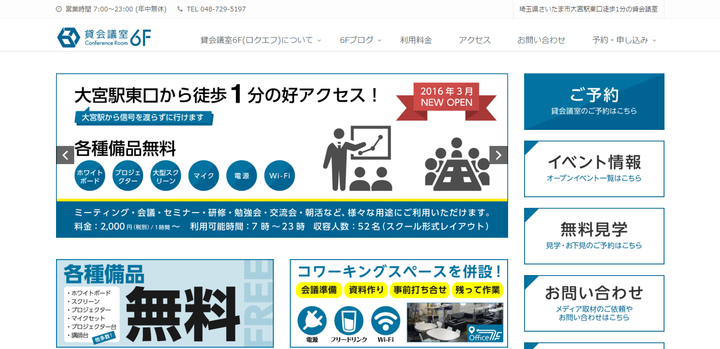 コワーキングスペース7Fからフロア増床する形で、同じビルの6階に、貸会議室6Fを作りました。