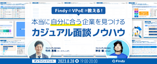 FindyのVPoEが教える!本当に自分に合う企業を見つけるカジュアル面談ノウハウ (2023/08/28 19:00〜)