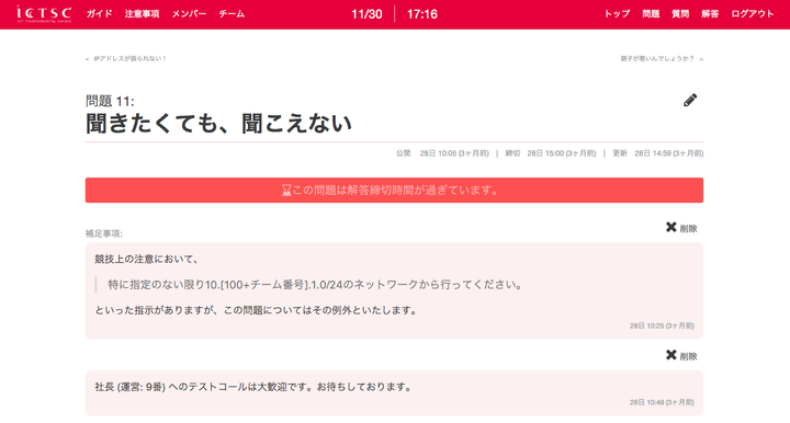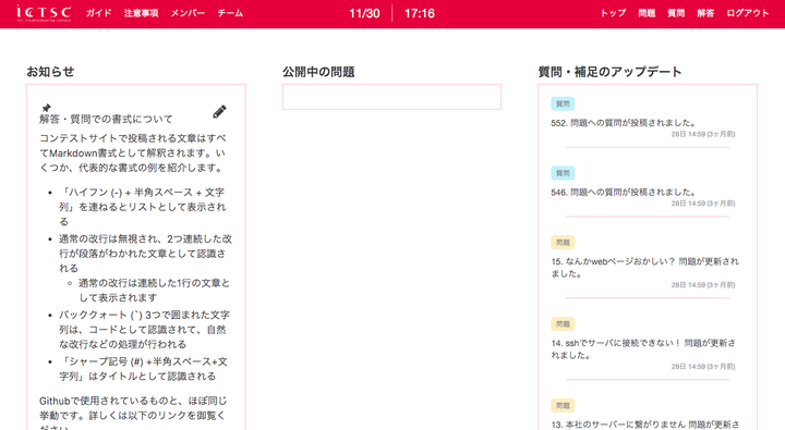 ICT トラブルシューティングコンテストで第6回から使用され続けているコンテストの運営支援アプリです。 大会運営を円滑に行うため、出題や採点、質問対応といった大会中のイベントを容易にハンドリングできるようにしています。 DB設計から始まり、API/フロントエンドの実装、RBAC等の実装を行いました