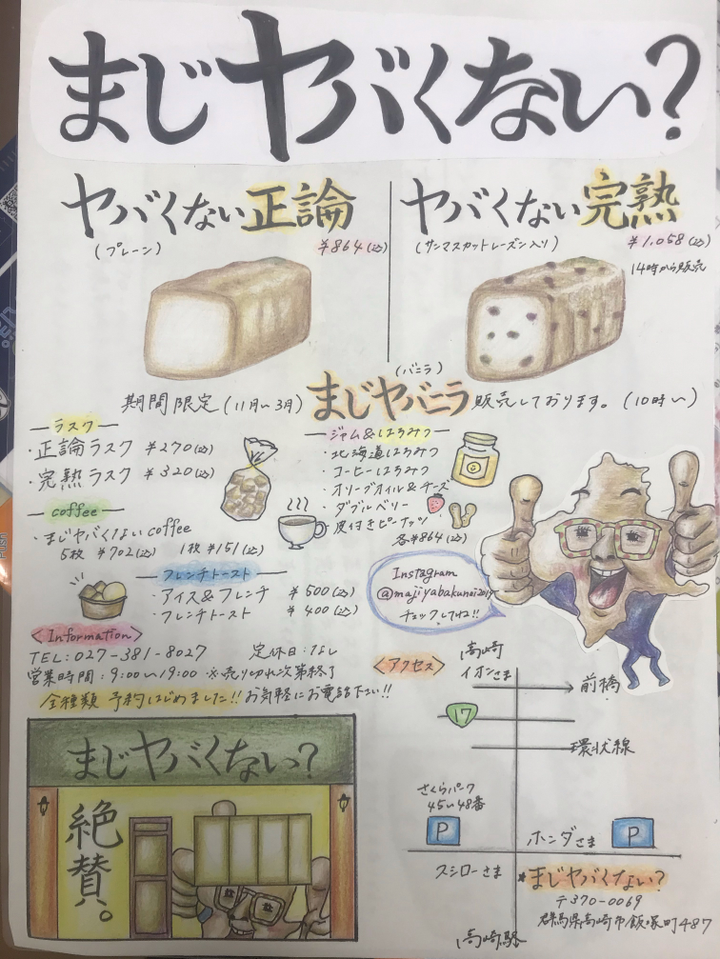 食パン専門店でアルバイトをしていて、商品の情報を伝えるチラシや看板作りを行っている。親しみやすく温かみを持たせるため、案内は手書きで作成している。