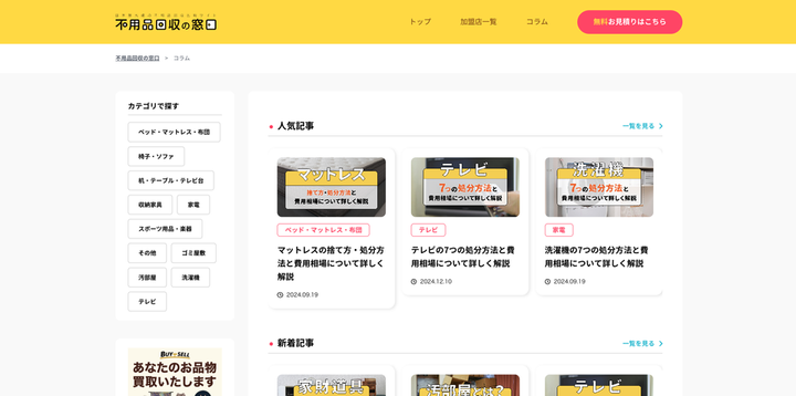 加盟店登録ページ: https://gaihekiplus.com/store https://senbatsu.com/store https://gekitai.jp/store 時計買取LP: https://kaitora-tokei.satei.site/ 宝石買取LP: https://kaitori-jungle.satei.site/ 不用品回収の窓口コラムページ: https://fuyouhin.support/column/