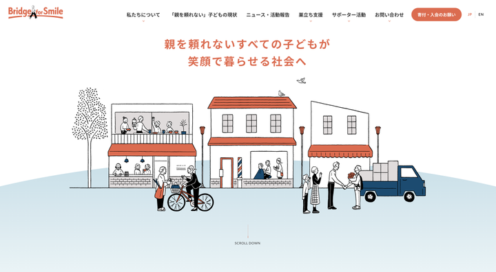 Bridge For Smile、親を頼れない子どもたちの巣立ち支援をしているNPOのwebデザインを担当させていただきました。