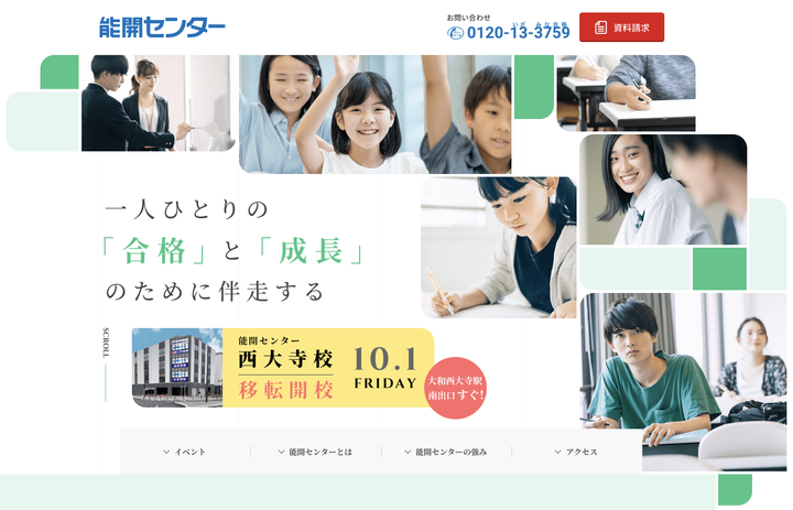 能開センター・西大寺校の移転開校用のブランディング・LPデザインを担当させていただきました。