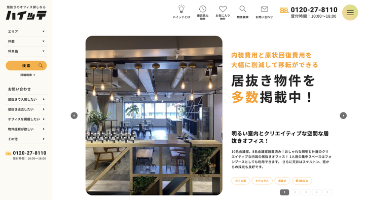 居抜き情報メディア「ハイッテ」のデザイン・機能リニューアル全体ディレクション