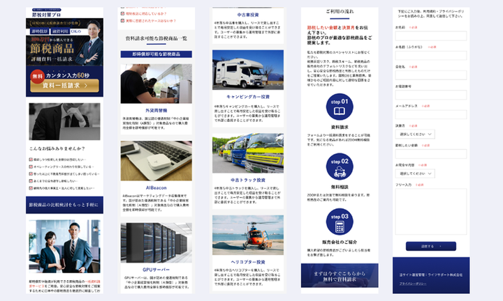 【実案件】経営者向けの節税対策商品の資料一括請求サービスLP