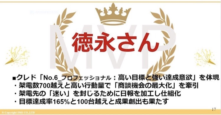 高い行動量と行動を担保するための施策及び、達成数字を評価され月間MVPを獲得。