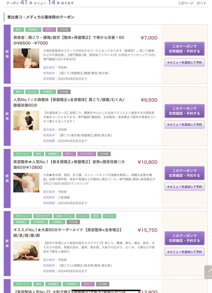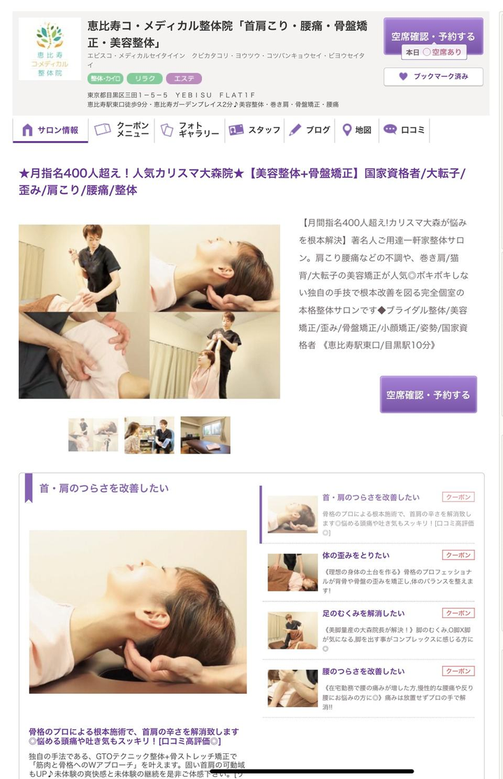 Hotpepper beauty掲載:恵比寿コ・メディカル整体院様