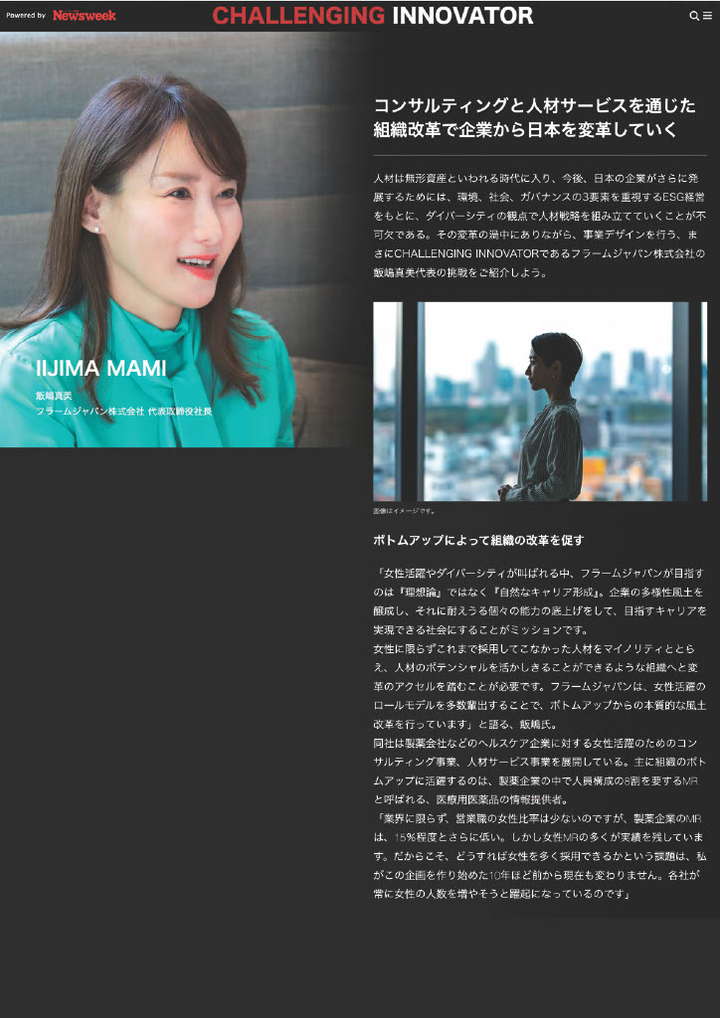 アメリカの経済誌「NEWSWEEK」に、2023年 CHALLENGING INNOVATORに選出いただきました。