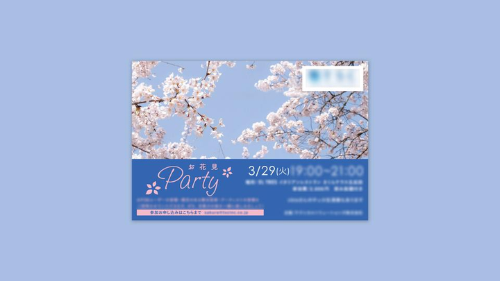 企業様がクライアント様、パートナー様と信仰を深めるお花見会の案内ハガキをデザインしました。ソフトウェアを販売されている会社様で、WEBサイトやパンフレットなどは少しかためのテイストでしたので、イベントの内容に合わせていつもより柔らかいトンマナで親しみを持っていただけるように工夫しました。