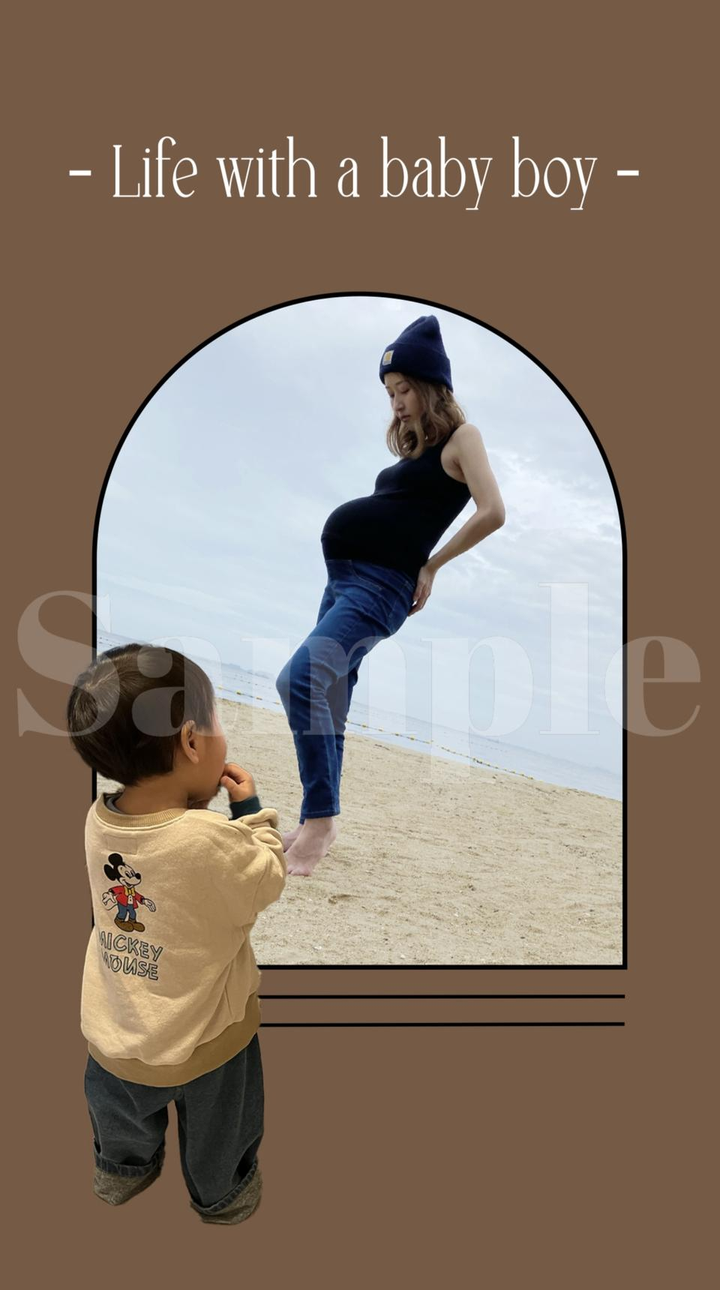 プライベート用に制作したものです。 モカベースのものが好きなので、モカカラーでアーチ内の写真は過去のもの。 無事出産を終え、本人が過去を覗いている少し面白いものを。 周りに見せたら意外と反応が良かったので安心でした◎