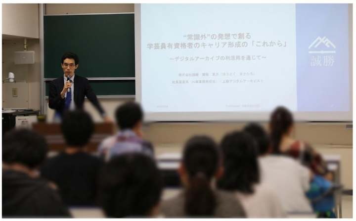 これまで人文科学系人材へのAI・デジタルアーカイブ利活用教育実践で培った経験を活かし、現在多くの企業が課題としている「AI・ビジネスデータ活用」ノウハウを文系出身者にも分かりやすく伝える講師業を営む。