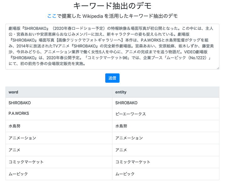 https://pompom168.hatenablog.com/entry/2019/08/09/144054 で提案したWikipediaを活用したキーワード抽出のデモ