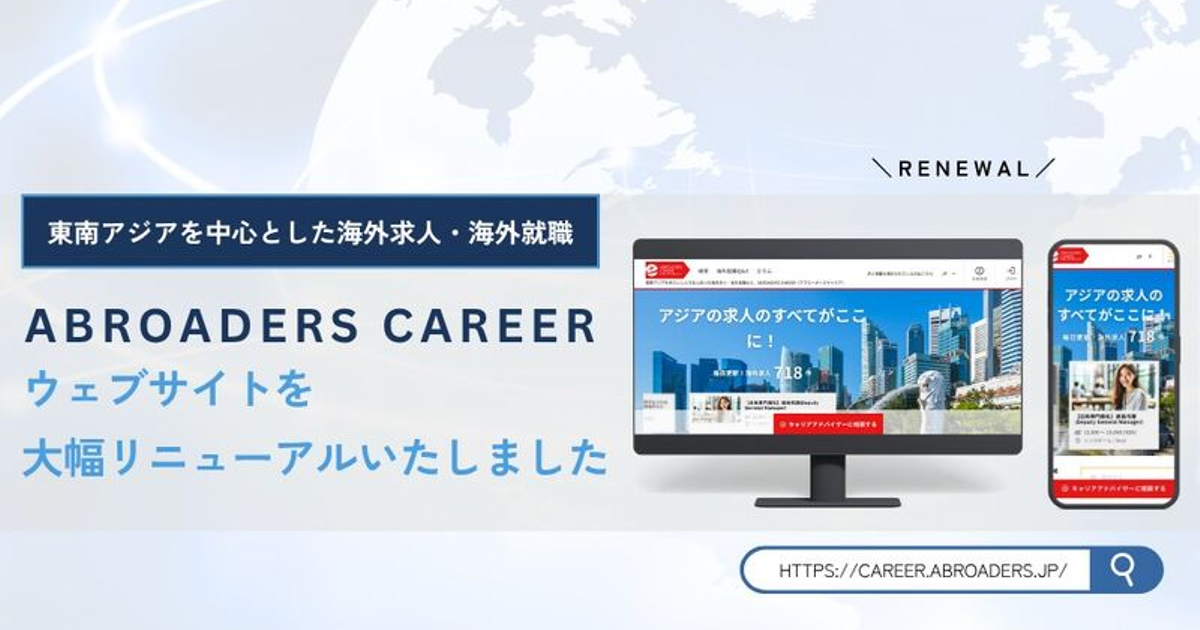 海外就職・海外転職の情報迷子を解消 Reeracoen(リーラコーエン)グループの求人プラットフォーム「ABROADERS CAREER」9年ぶり全面リニューアル