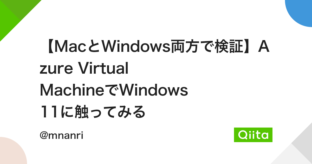 【MacとWindows両方で検証】Azure Virtual MachineでWindows 11に触ってみる - Qiita