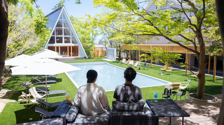 【地域】香川県・東かがわ市 【部屋】35室 【コンセプト】#瀬戸内ローカルにときめく、滞在型アウトドアホテル #京阪神から車で2時間30分 #三角屋根のフィンランドサウナ #中庭プールと水風呂 #木漏れ日テラス #カフェBAR #離れに秘境プライベートビーチ付き