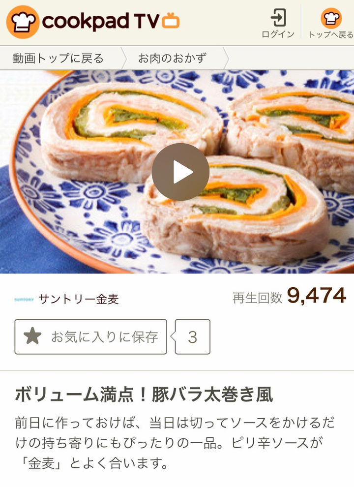 [クックパッド料理動画]ボリューム満点!豚バラ太巻き風