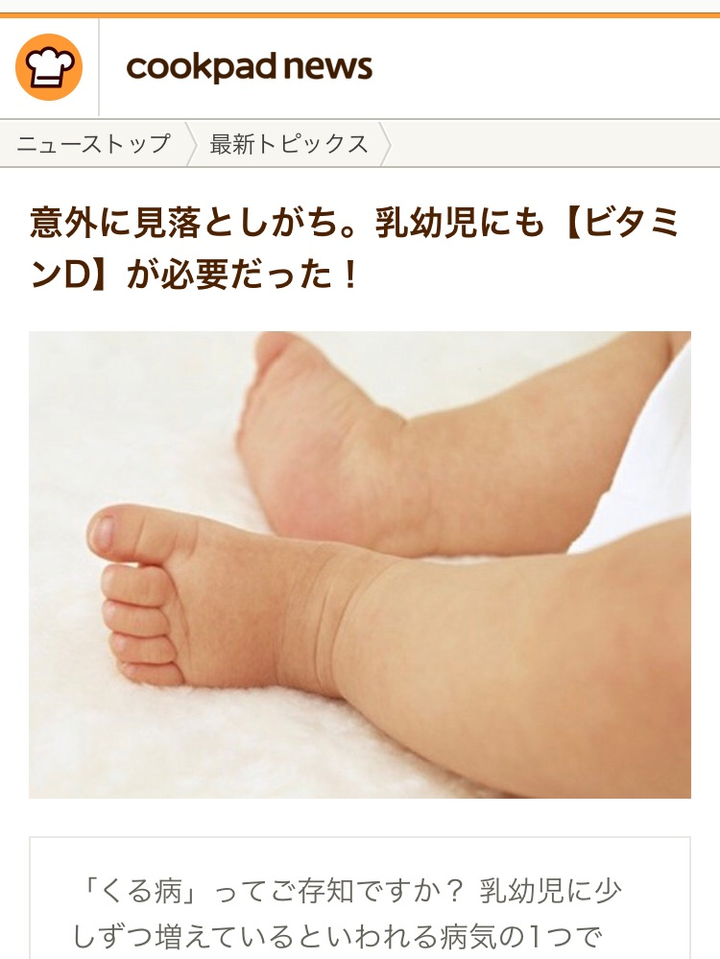 [クックパッドニュース]意外に見落としがち。乳幼児にも【ビタミンD】が必要だった!