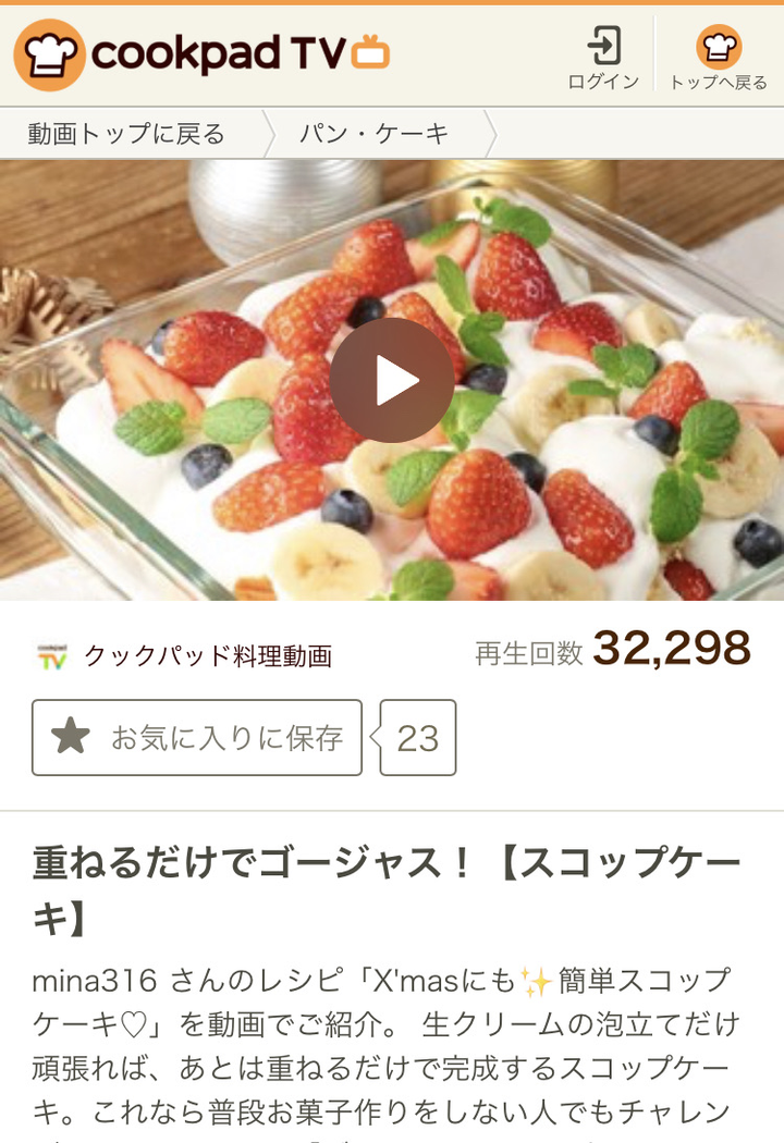 [クックパッド料理動画]重ねるだけでゴージャス!【スコップケーキ】