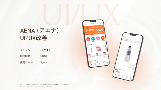 ECサイトアプリのUI/UX改善。 ※公式見解とは関係のないリデザイン案です。 ユーザーの負担を減らすためスクロール数をなるべくなくしたり、在庫確認・検索を容易にしたりと、使い勝手の良さを追求したUIにしました。