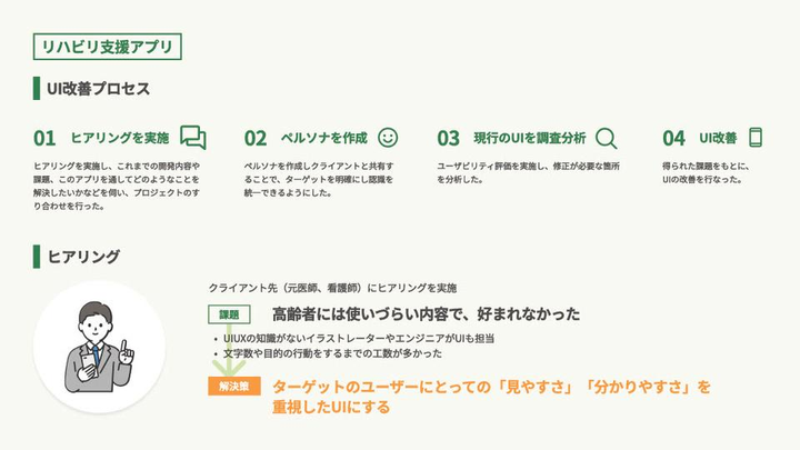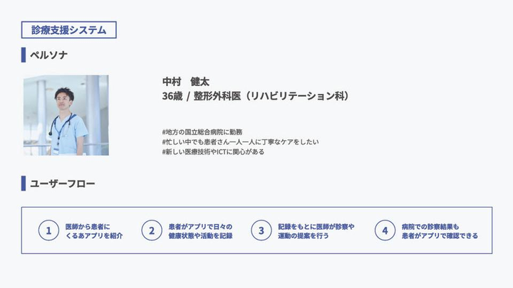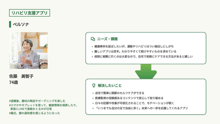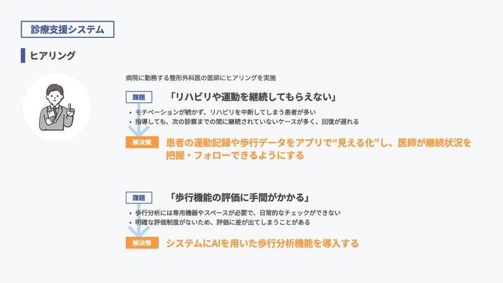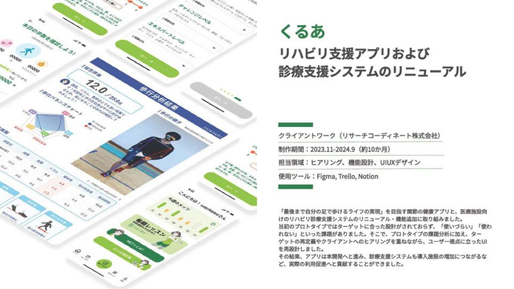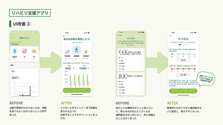 「最後まで自分の足で歩けるライフの実現」を目指す関節の健康アプリと、医療施設向 けのリハビリ診療支援システムのリニューアル・機能追加に取り組みました。
