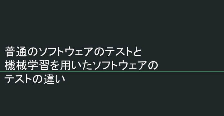 MLOpsコミュニティへ招待されての講演です。 これまでのシステムに対するテストと機械学習を用いたソフトウェアのテストの違いを説明しています。