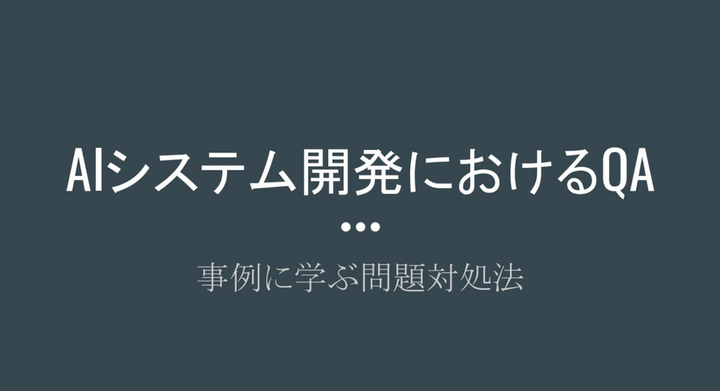 Ques20での講演です。 AIシステム開発におけるQA手法、考え方をこれまでの経験から整理して話しています。