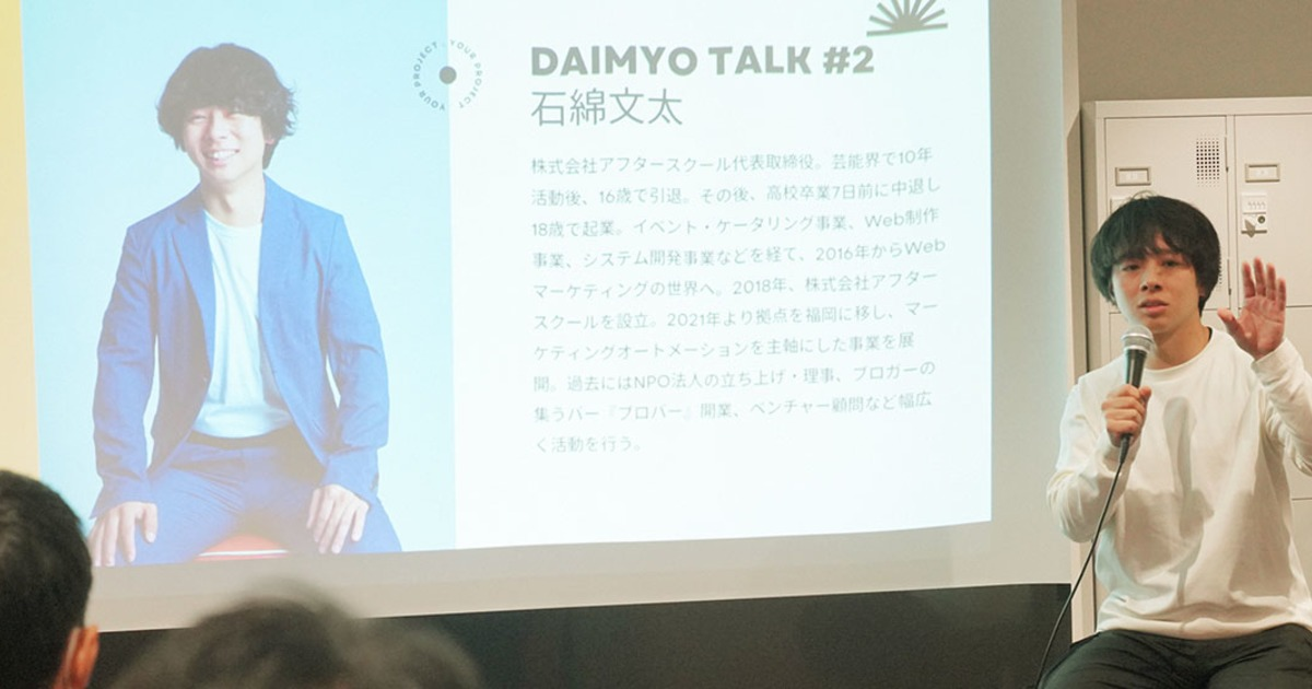 福岡で急成長中の注目ベンチャーとして「DAIMYO TALK#2」に弊社CEO石綿が登壇しました!