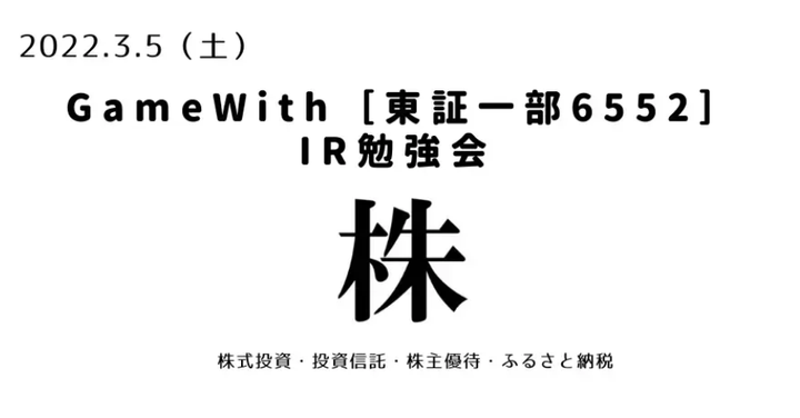 (IRセミナー&投資家交流会)IR勉強会@GameWith本社