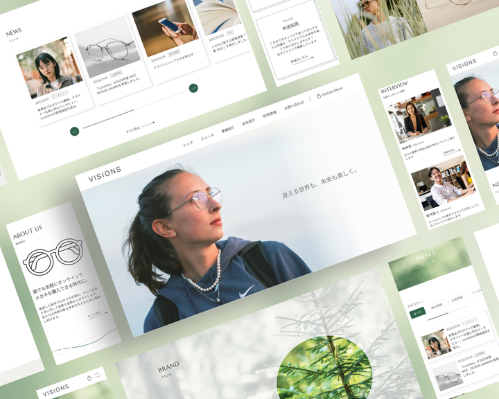 サステナブルをコンセプトに、「環境にやさしい材料を使用したメガネを販売しているブランド」を配色やあしらい、画像補正を行い表現しました。