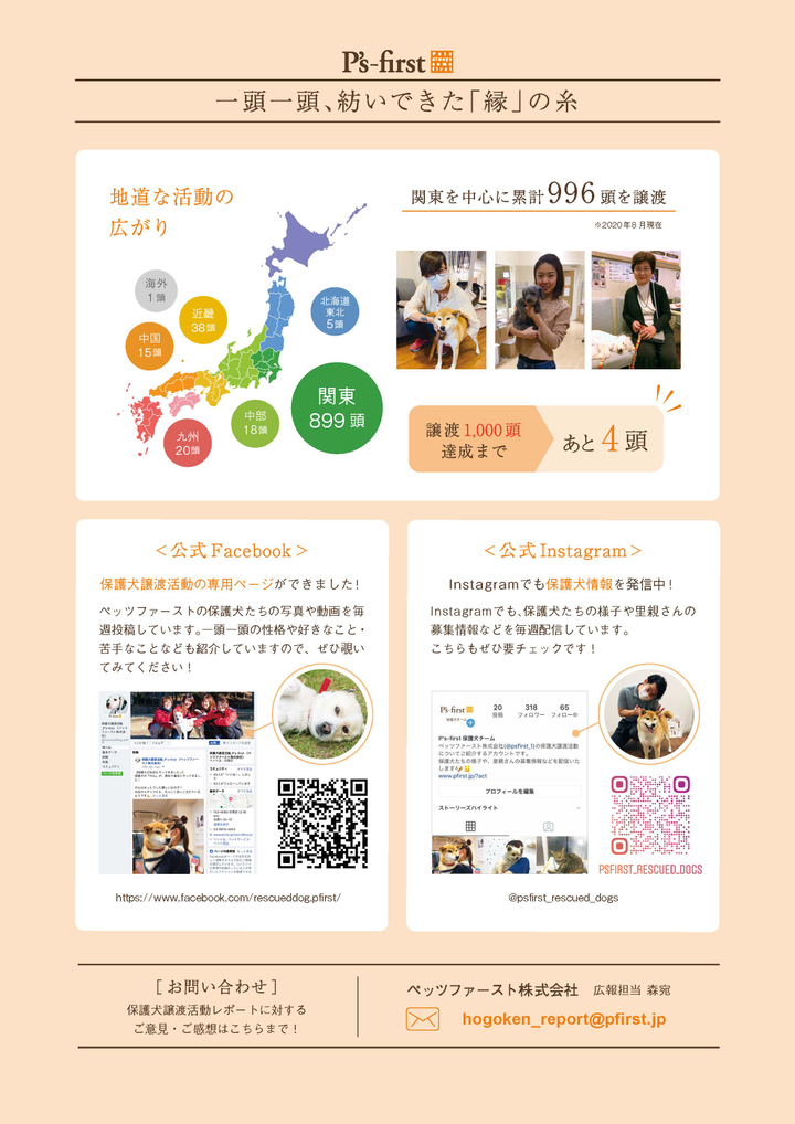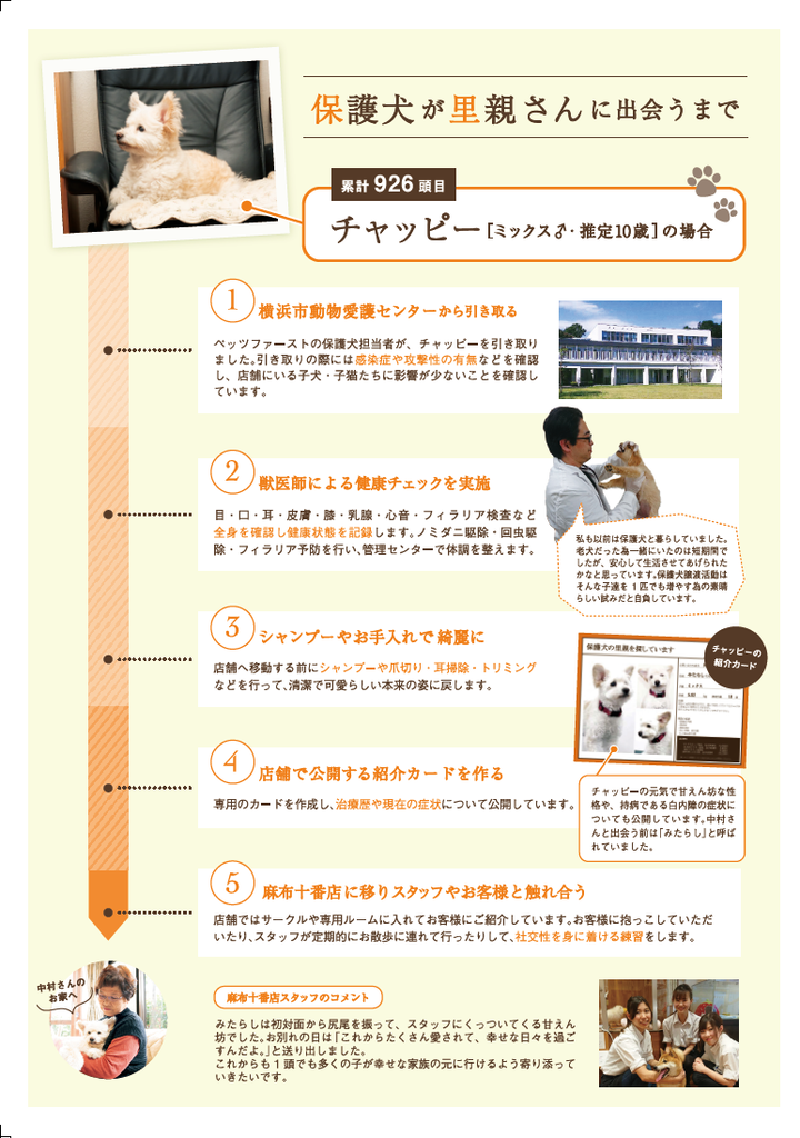 <入社後4ヶ月間> 事業開発本部にて『保護犬譲渡活動レポート』を作成しました。ペッツファーストのCSR活動をどうやって周知するか考えてコンテンツ企画を作り、取材・撮影指示・記事執筆からデザイン依頼・入稿までを1人で担当しました。