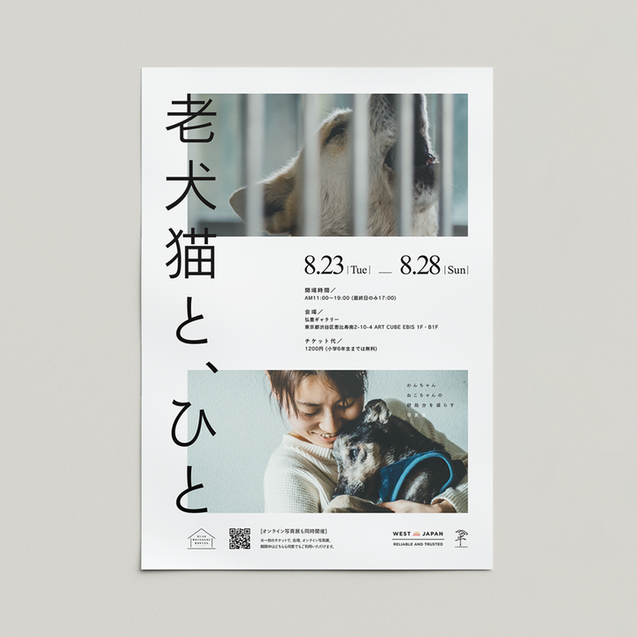 犬猫の殺処分を減らす写真展「老犬猫と、ひと」のポスター、DMをデザインしました。