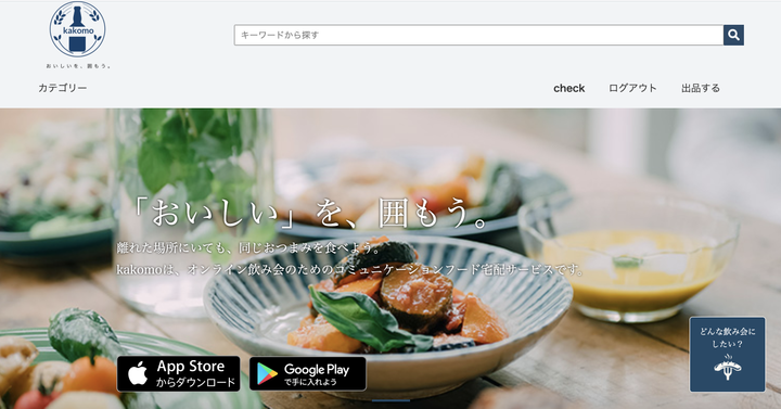 オンライン飲み会で、参加者に同じおつまみをお届けするコミュニケーションフードアプリ「Kakomo」制作中。