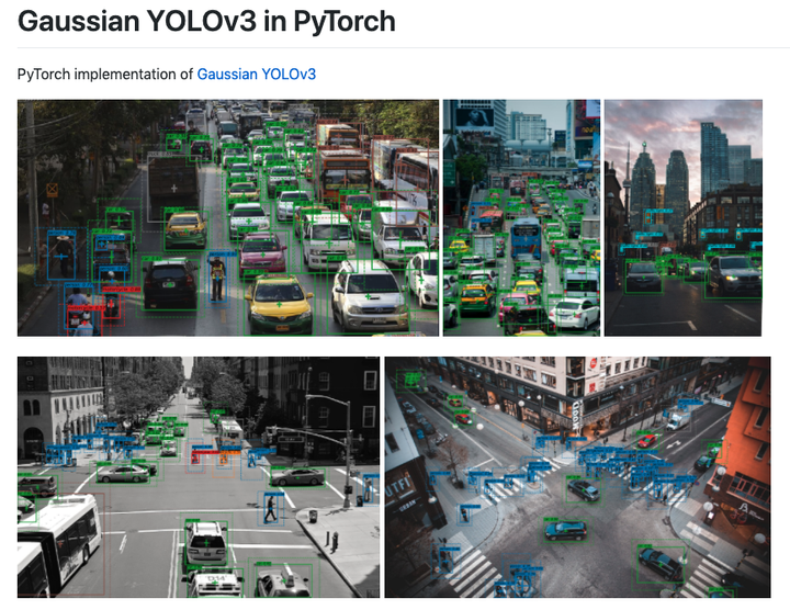 Gaussian YOLOv3 (ICCV2019) の PyTorch による再現実装。2020年4月現在、まともに動作する唯一のPyTorch実装と思われる。