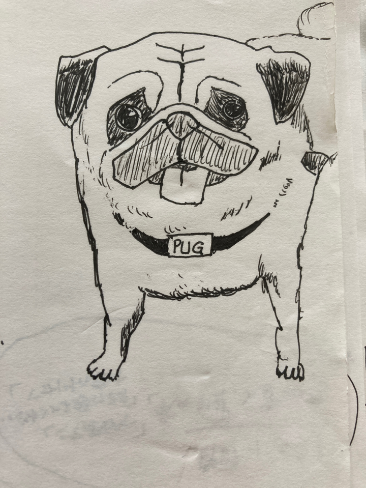 パグの言葉の意味である「優しくて愛されるもの」に惹かれて、描きました。 パグみたいな人間になりたいです。