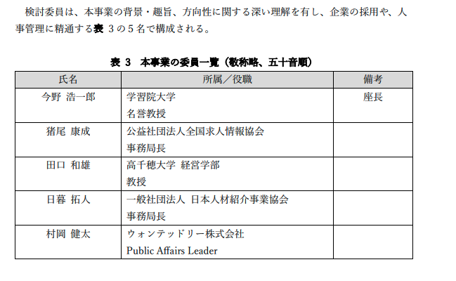 「企業における採用経路の選択動向等に関する調査研究事業 」の有識者委員となった