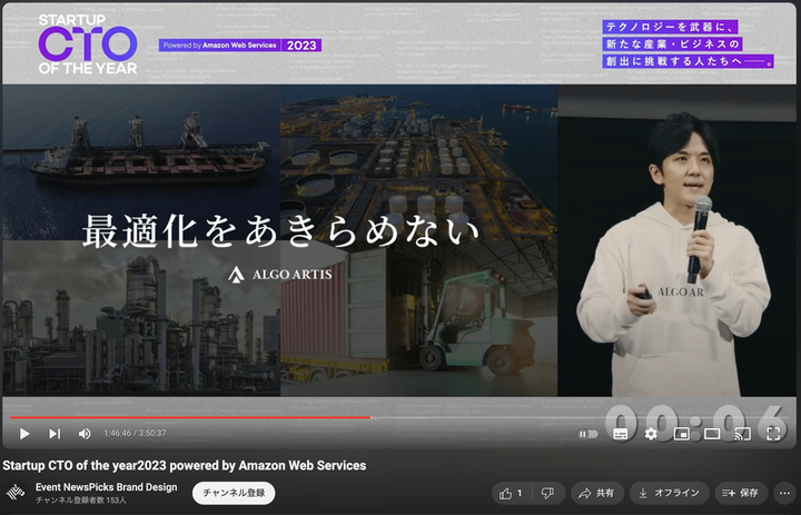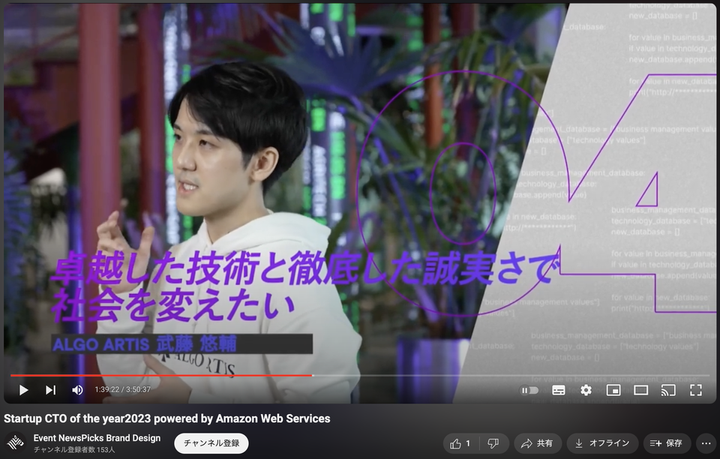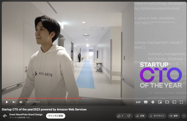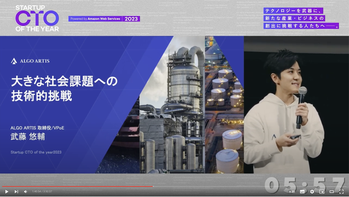 ピッチ動画(1:40:44 〜)- Startup CTO of the year2023 powered by Amazon Web Services