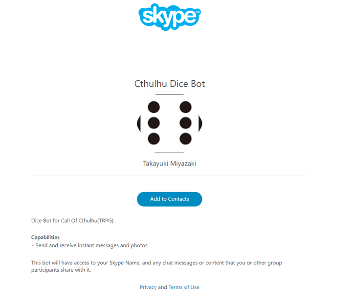 TRPGの一つである「クトゥルフ神話TRPG」をSkype上で便利に遊びたいというためだけに作ったBot(Bot Frameworkを使用)。 定型コマンド入力(英単語)では面白くないと思ったので無駄にMicrosoft AzureのAI の一つであるLUIS(Language Understanding Intelligent Service)を利用して無駄に日本語に対応しています。