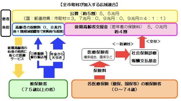 後期高齢者医療制度についてまとめてみました。 後期高齢者医療制度とは 2008年に施行された後期高齢者だけが独立した医療制度。 適用年齢(75歳以上)になると、現在加入している国保や健保から移行となる。 保険者は都道府県ごとに設置された後期高齢者医療広域連合。 後期高齢者医療制度の仕組み 出典:厚生労働省ホームページ - https://www.mhlw.go.jp/bunya/shakaihosho/iryouseido01/info02d-26.html 後期高齢者医療に要する費用は、50%が公費(一般税収)で、50%が社会保険料で賄われる