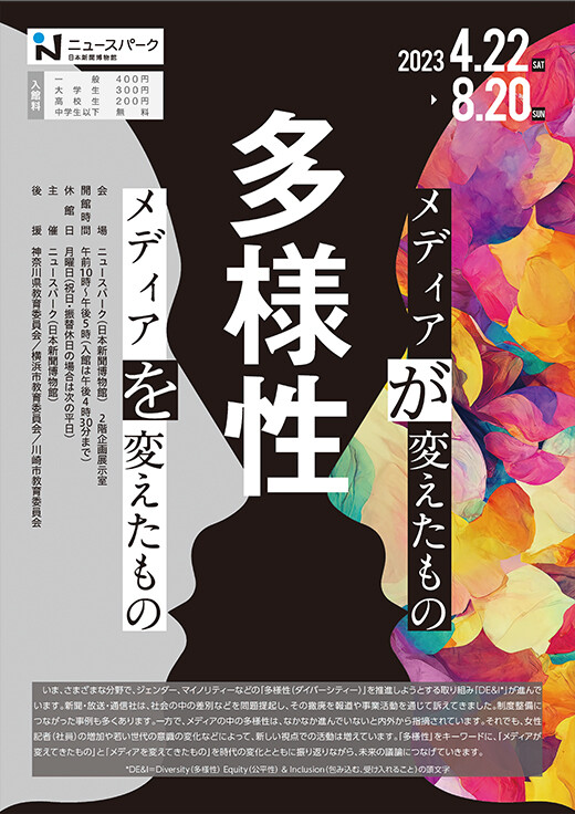 企画展キービジュアル、空間デザインおよび設計を担当。近年注目度が上がっているダイバーシティ課題を様々な視点から紹介しています。特にジェンダー課題はまだまだ途上ではあるものの、ここまでのあゆみを、困難を乗り越えてきた女性先駆者の皆さんの寄稿がたくさんあり感銘を受けます。