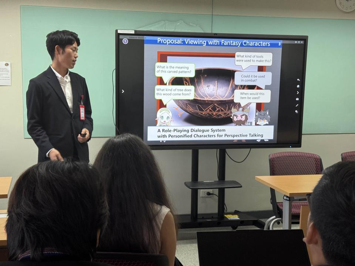 ICADL2025(デジタルライブラリ系のトップ国際学会)にて、Short Paperとして採録されました(DEIM2025で発表したものをShort Paperにして投稿しました)。 この研究では、ミュージアムを多様な疑問を持ちながら鑑賞するのを支援する対話型鑑賞システムを提案しています。 具体的には、古典的に博物館の鑑賞者が展示内容を記憶に残すために、展示に対して「多様な視点から疑問を持ちながらの鑑賞」が有効であるとされているが、複数人による鑑賞でしかできなかったところに着目して、多様な疑問を持ちながらの鑑賞を支援する対話型鑑賞システムを提案しています。 具体的なアプローチとしては、ファンタジーのキャラクター3人が展示に対して疑問に思ったことを発言し、それを見て鑑賞者は自分以外の他の人の意見を取り入れます。それに加えて、キャラクターの1人が会話中に離席し、離席したキャラクターのなりきるよう促すことで、鑑賞者自身の疑問を思いつく能力も鍛えます。最終的には、システムなしでも鑑賞者が多様な視点で疑問を思いつきながら鑑賞できることを目標としています。