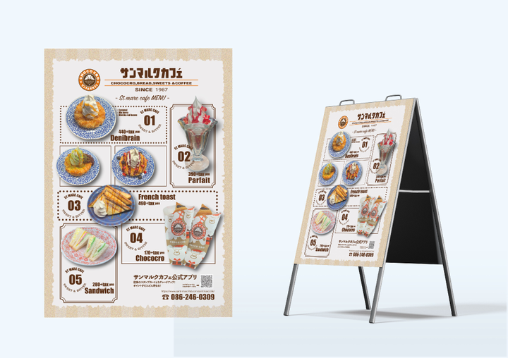「働いてるからこそ、分かること」 サンマルクカフェでアルバイトをしていることをきっかけに制作したメニューデザインです。 アルバイトしてるからこそわかる、あったらいいなと思うデザインや、お客様の声を反映させて制作しました。 ナンバーを伝えるだけで、注文ができるというところがポイントです!