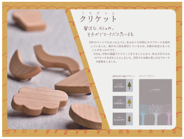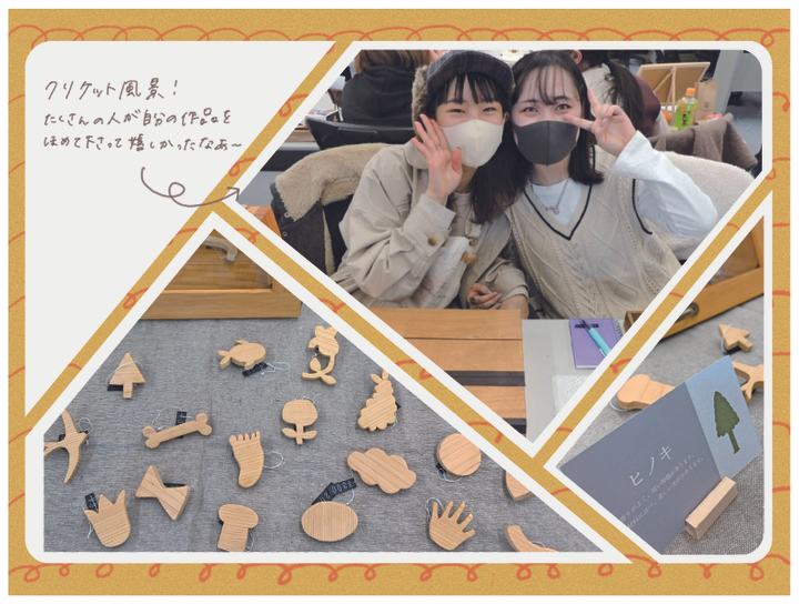 クリエイターズマーケット、クリケットを行いました。 私は、Matxiko(マティコ)というお店を出店しました。 自分のニックネームを文字って考えた名前です! コロナ禍で始めた、木のブローチづくりの成果を大いに発揮することができたイベントとなりました。 自分の制作したものが、実際にお客様の手にとって買って頂けるというのはとても嬉しいし、良い経験になりました。 お客様がさらに、こんなものがあったら嬉しいな、というお声も頂くことが出来たので、またこういったイベントには積極的に参加していきたいです。